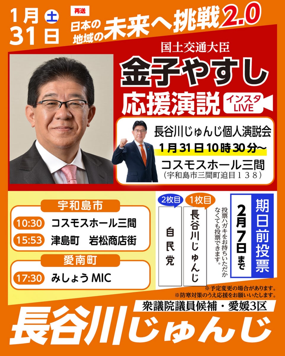 #長谷川じゅんじ #愛媛3区 #衆議院選挙2026 #衆議院選挙 #金子やすし