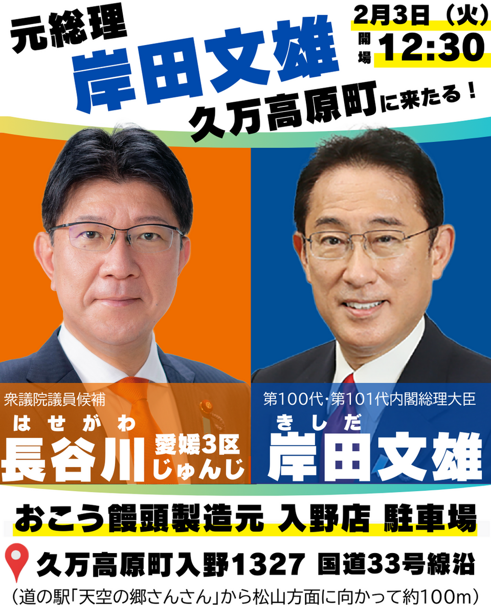 岸田文雄元総理大臣が応援演説に来ます‼️ぜひお越しください!
