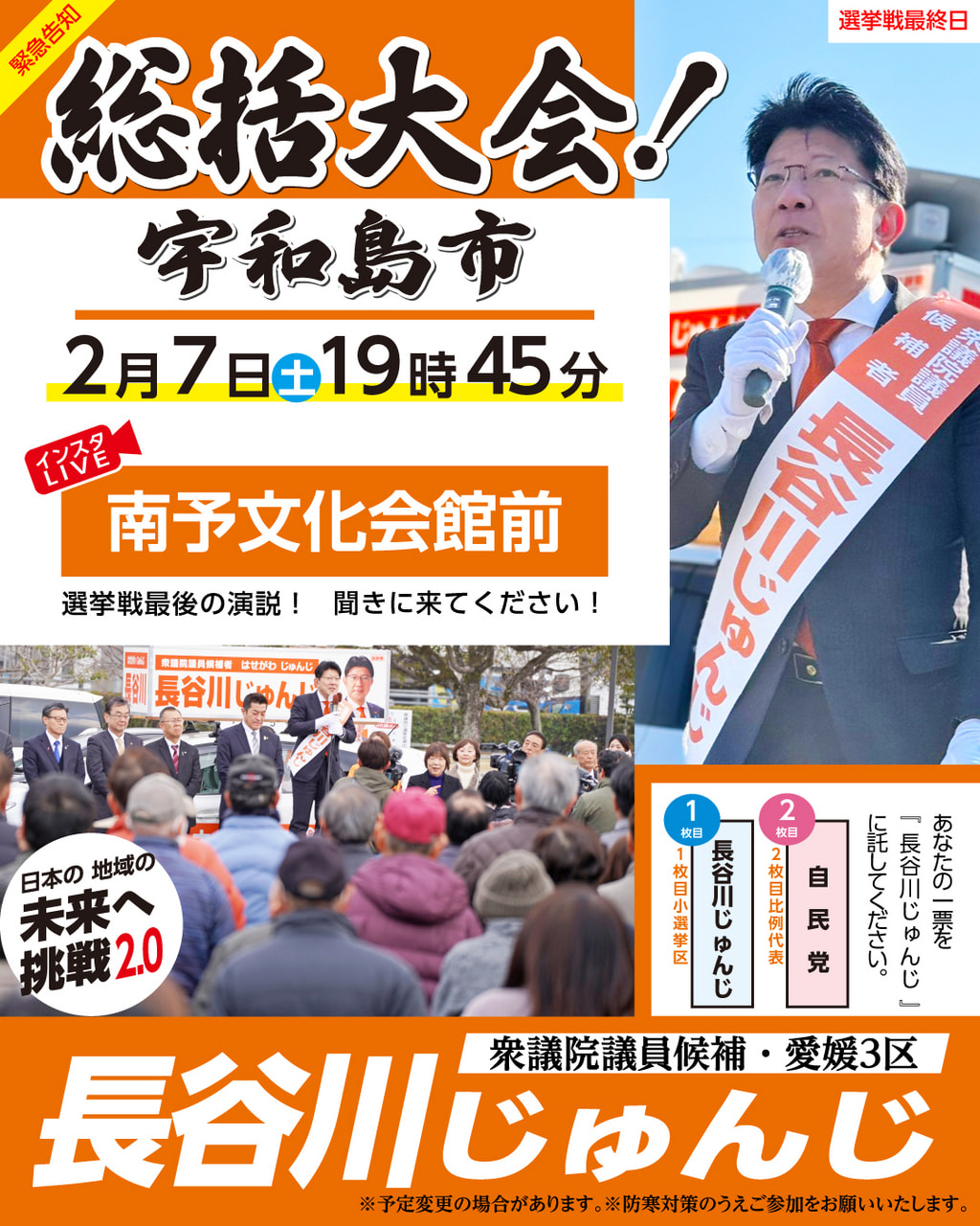 遊説日程 2月7日(土) 松野町・鬼北町・宇和島市