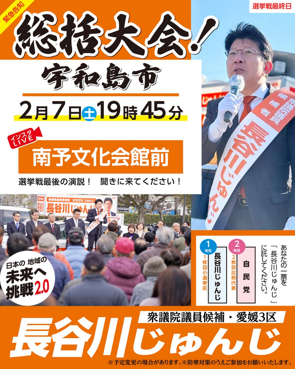 #長谷川じゅんじ #愛媛3区 #最後のお願い
