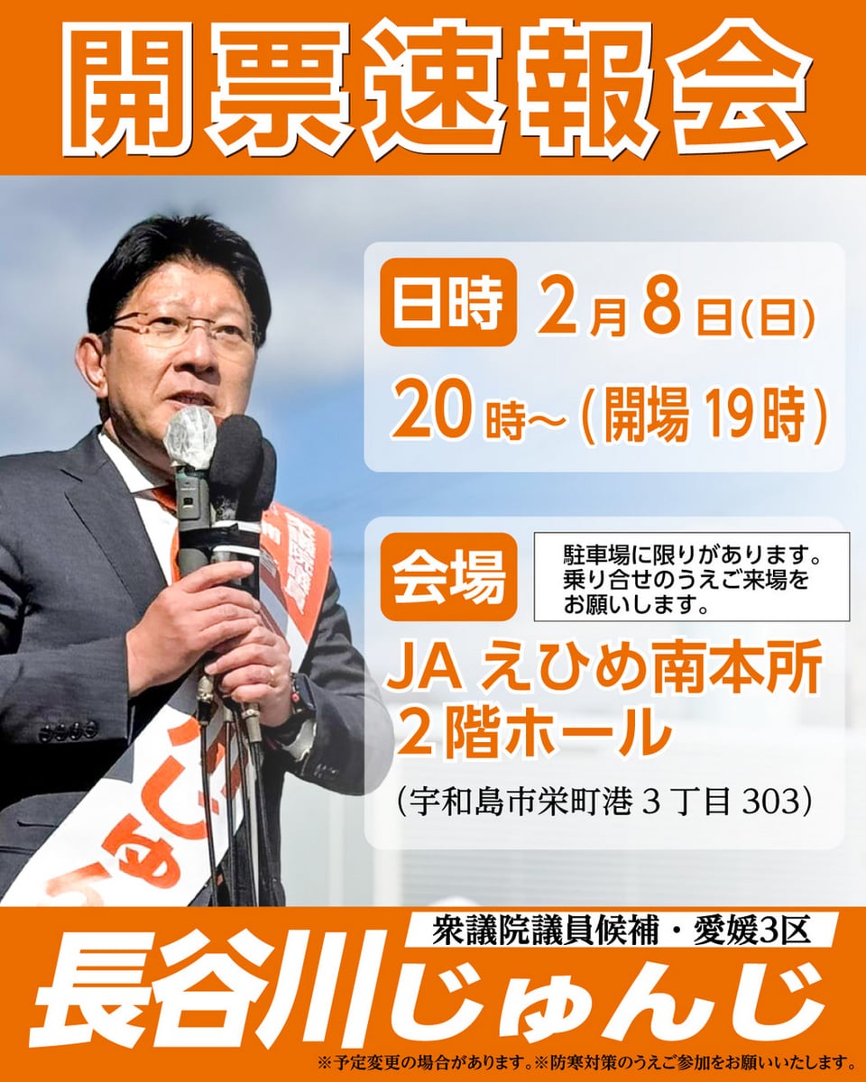 <開票速報会> 2月8日20時~ JAえひめ南本所