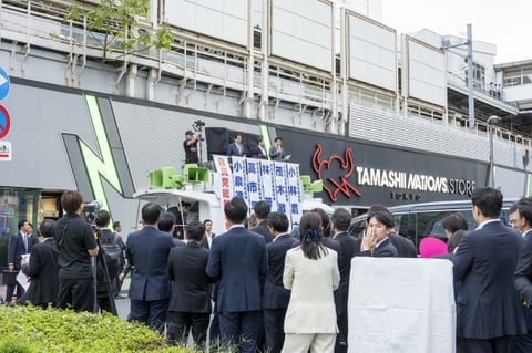 ▼秋葉原駅電気口 自民党総裁選挙地方遊説。